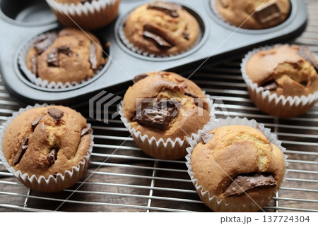 焼きたての手作りチョコチャンクマフィン ホットケーキミックスを使ったマフィン