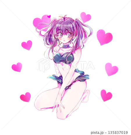 水着の女性 ツインテール 紫髪 恋