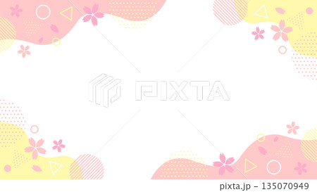 春 桜 幾何学模様フレーム 16:9サイズ ベクター イエロー ピンク