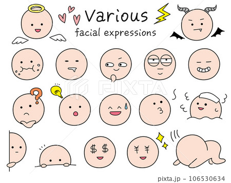 シンプルでかわいい色々な顔表情のアイコンセット カラーの絵文字風