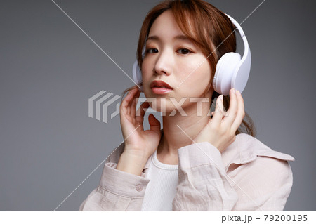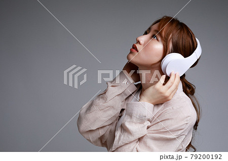 ヘッドフォンで音楽に聴き入る若い女性