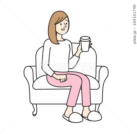 シンプルな人物イラスト 女性のライフスタイル ソファに座る女性