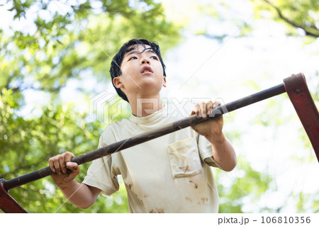 懸垂をする小学生男子