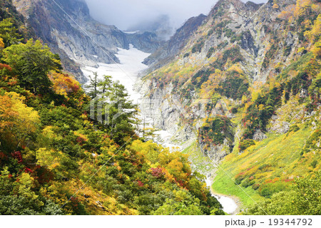 剱沢雪渓紅葉