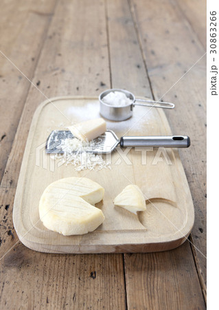イタリアン食材チーズ、パルミジャーノ・レッジャーノとチーズグレーター。
