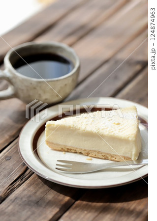 クッキーボトムのレアチーズケーキとブラックコーヒー