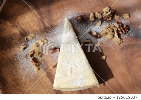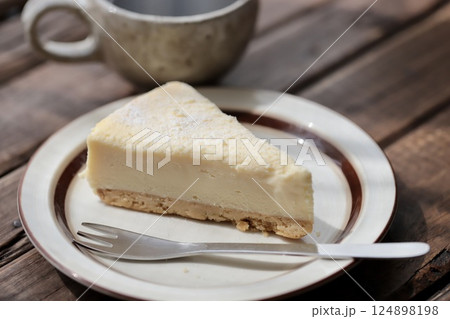 絵皿にのせたベイクドチーズケーキ しっとりケーキ