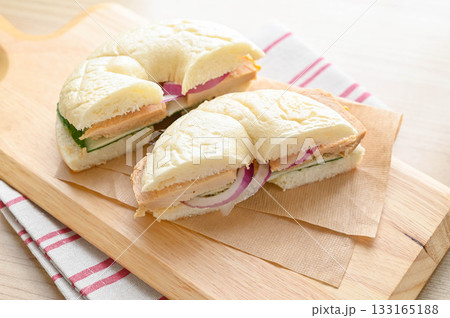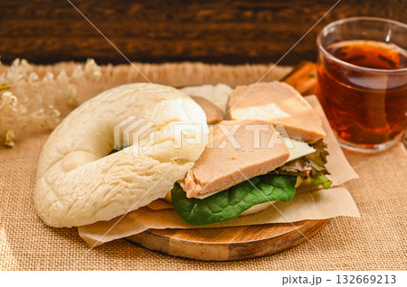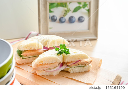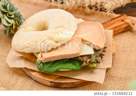 Delicious sandwich filled with fresh ingredients like crisp vegetables, tender meats, and savory spreads, all between two slices of soft bread. Perfect for a quick and satisfying meal.