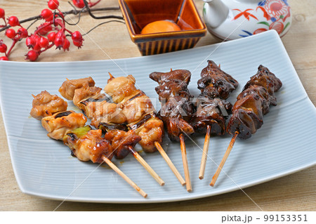 やきとり、焼き鳥、ヤキトリ、焼鳥、鶏肉料理、和食、串焼き。