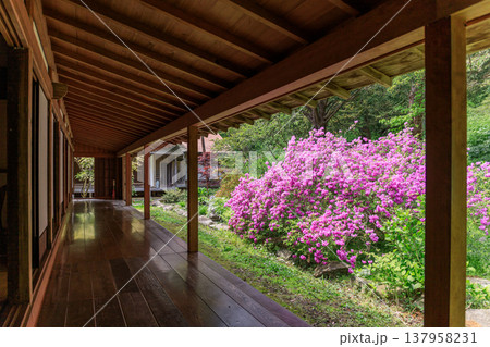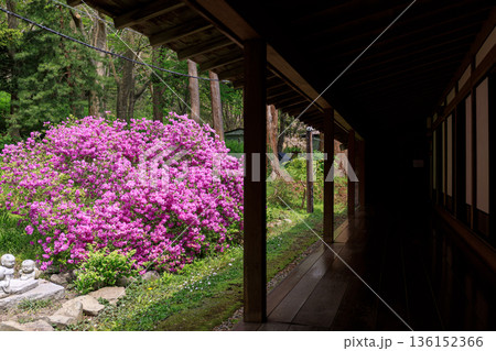 北海道伊達市、有珠善光寺の客殿裏に咲くヨドガワツツジ【5月】