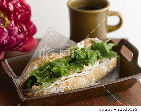 水彩で描いたツナとレタスのサンドイッチイラスト(食べ物)