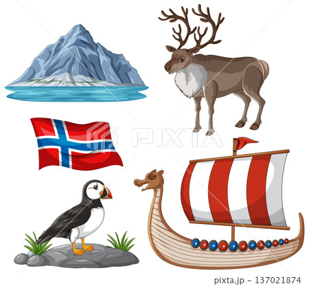 Norway Cultural and Natural Symbols Vector Illustration Set on White Background
