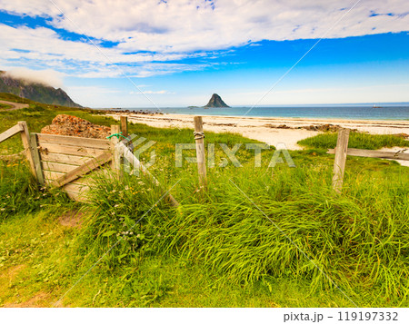 Sea coast sandy beach in resort Bleik Andoya Norway