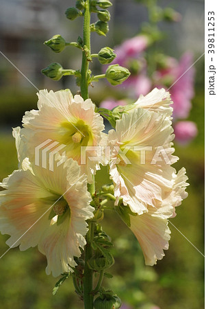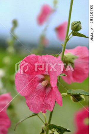 タチアオイ(立葵) ピンク色の花 背景素材