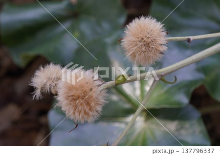 日かげのワタボウシ(ツワブキの種)