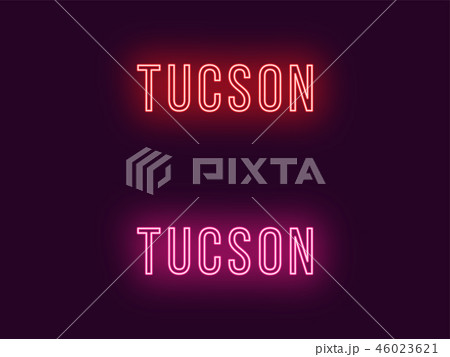Neon name of Tucson city in USA. Vector text