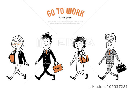 ベクターイラスト素材:通勤する人々、歩くビジネスマン