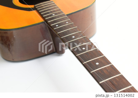brown wood acoustic guitar isolated on white background