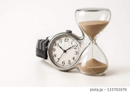 Hourglass filled with black sand highlighting the passage of time in a minimalistic design