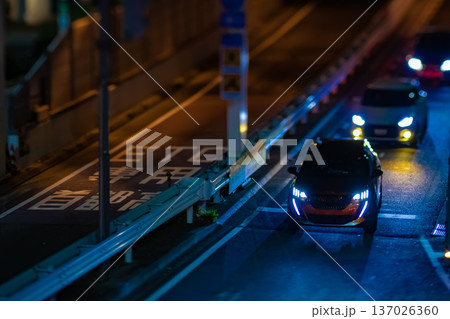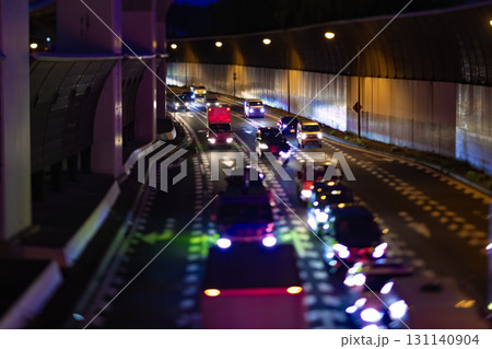 ミニチュア風・夜間の王子北首都高速出入口の交通【都会イメージ】