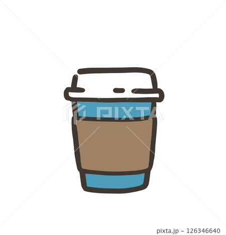 Flat vector illustration of disposable coffee cup with lid, doodle style, mockup concept, cozy beverage scene, cartoon illustration for cafe, takeaway, coffee shop, fun and casual atmosphere