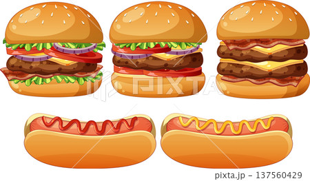 Vector illustration of a family buying takeout from a food truck at night. The scene highlights a cheerful interaction between the server and customers, including a dog. Vibrant and engaging.