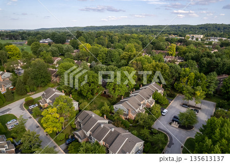 A view of a residential area with houses and trees. Chesterbrook, Pensilvania. USA