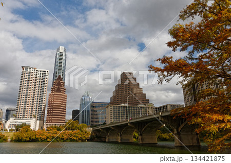 テキサス州 オースティン コングレス・アベニュー・ブリッジとダウンタウン