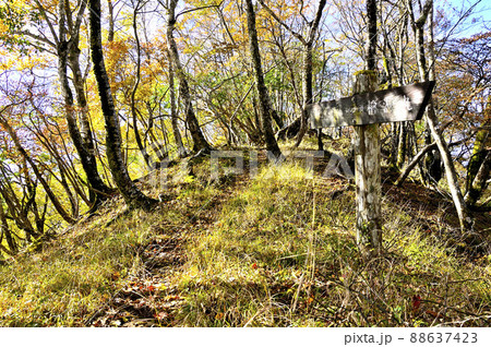 丹沢の石棚山稜 紅葉のテシロノ頭の山道