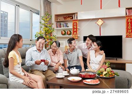 Family gathering for reunion dinner