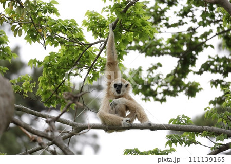 枝に掴まるシロテテナガザル