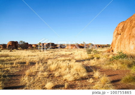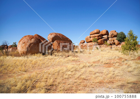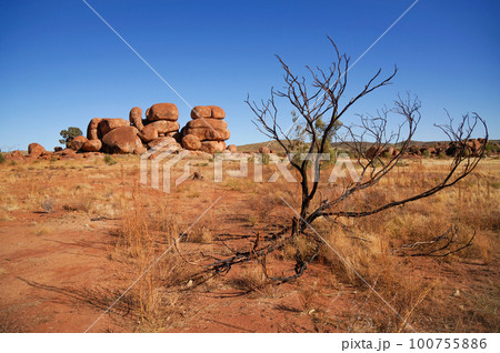 岩石が転がる荒涼とした風景のデビルズマーブル