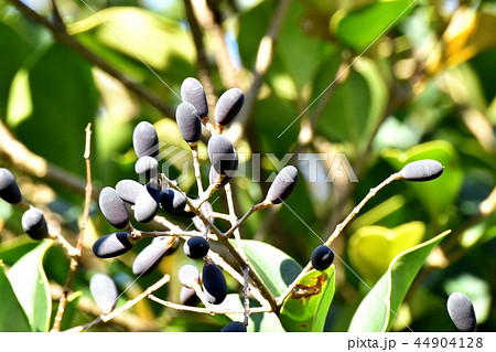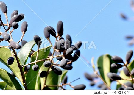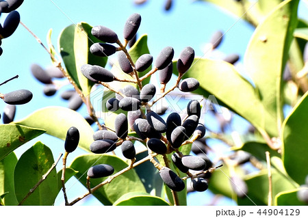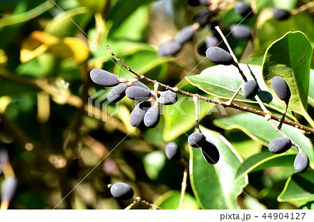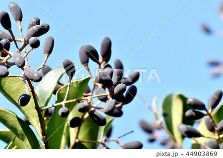 日差しを浴びた黒い実(実をつけたネズミモチの枝)