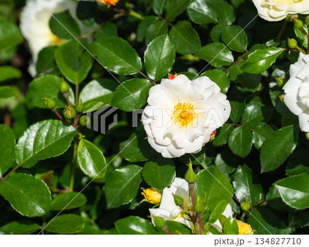 神戸須磨離宮公園の春のバラの花(白)、テリハノイバラ