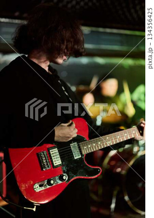 Electric Guitar In Club Atmosphere, Intimate Setting Where Musician Expresses Emotion Through Instrument