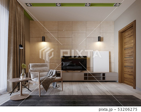 TV led mock up screen. Smart TV on a curbstone in an interior of the living room
