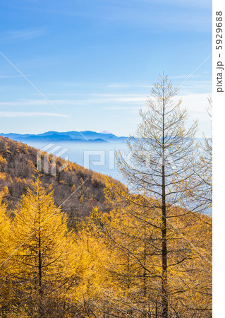 信州高峰高原からの富士山とカラ松