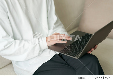 リビングでパソコンを使う男性