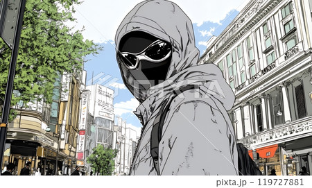 AI生成画像:フードを被った顔が見えない人のイラスト