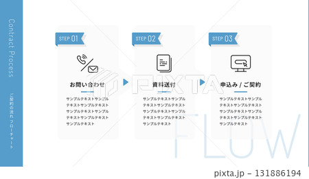 ご契約の流れ (お問い合わせ 資料請求 お申し込み 3ステップ シンプル) ビジネス図解テンプレート