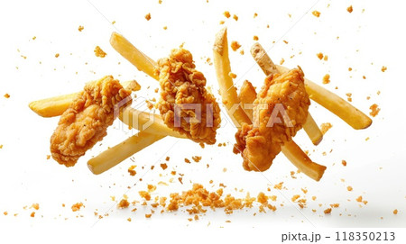 Crispy Chicken Fingers and Golden French Fries in Mid-Air Delight