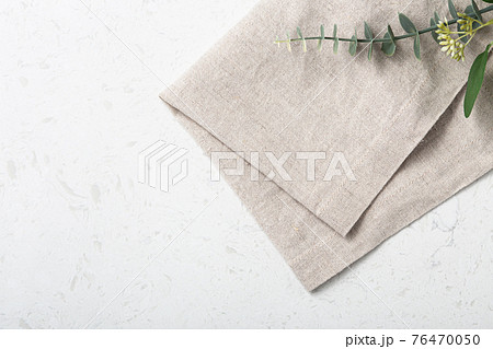 Cotton kitchen napkins on the white concrete table.Scandynavian style. Lifestyle.
