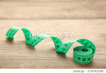Measuring tape of the tailor, on grey wooden background