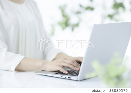 ビジネスイメージ パソコンを打つ若い女性の手元