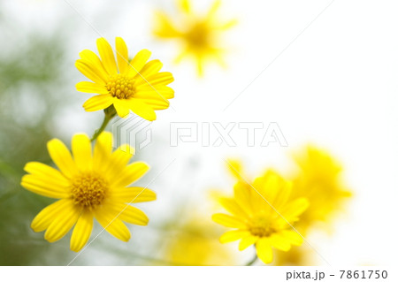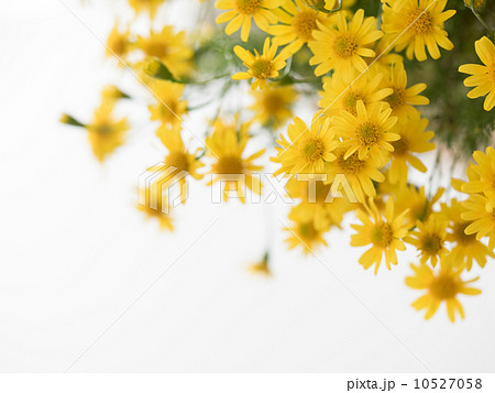白バックに可愛いキク科のダールベルグデージーの小さな黄色いたくさんの花