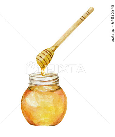 ガラス瓶に入った、トロリと垂れる蜂蜜 水彩イラスト