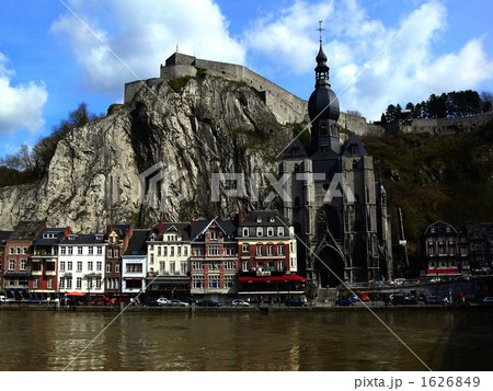 西ヨーロッパのベルギー ワロン地域ナミュール州の都市ディナン ノートルダム教会と城砦シタデルの景色