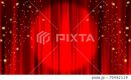 スポットライト 紙吹雪 赤いカーテン ドレープカーテン
