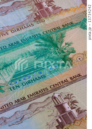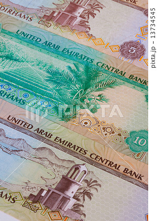 UAE money, dirham, paper banknotes, cash. Emirates money