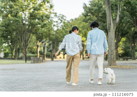 犬の散歩 夫婦 後ろ姿 ペット